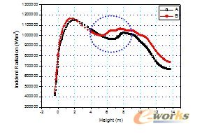 图5表明在炉膛的7米高度处,B方案由于增加了一排贴壁燃烧器,及时补充热量,辐射强度没有继续下降;而A方案中,7米高度附近的辐射强度偏低。综合对比两种设计方案,B方案的温度分布和辐射强度分布均优于A方案,新增加的一排贴壁燃烧器有助于在炉膛7米高度处及时补充热量,避免辐射强度偏低。最终采用第二种设计方案。CFD模拟计算为优化乙烯裂解炉设计提高工程设计的准确性提供了有力的技术指导。
