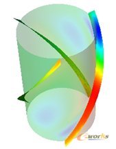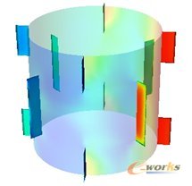SEI采用CFX软件进行烟囱横风振动的非稳态模拟计算,考察不同扰流板结构的抗风性能。图6和7是两种常见的扰流板结构。交错直板式扰流板在原有的烟囱中应用较多,计算对该结构和螺旋板结构进行了不同风速下横向力的对比。