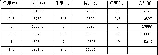 平衡杆的抗力有两种计算方法,一种是按理论力学平衡原理求出平衡杆抗力,另一种是通过有限元分析,即考虑平衡杆实际变形,求出平衡杆抗力,平衡杆的模型如图4所示。其中倾斜角度决定了抗力的大小,所以取2º到10º范围,得到对应的抗力的大小。如表1所示。