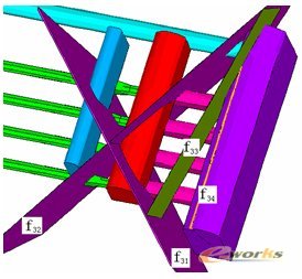 开挖部分的有限元网格如图1所示,四条主要断层f31、f32、f33和f34如图2所示。