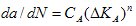 的变化规律,如图1所示对裂纹深处A和表面处C分别应用Paris裂纹增长公式,得到: