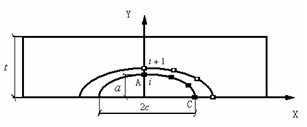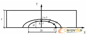 为了计算出裂纹扩展过程中半椭圆形裂纹的深度和表面半长度之比