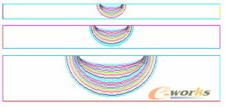 =1时,基本接近。所以当取 1、0.5和0.25mm时,裂纹扩展形状基本一致,为节省计算量,本文取