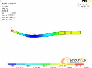 图5为某型码头车的刚度计算。要求同时运输两个集装箱且变形后不干涉,我司同时进行试验和计算,试验结果为17mm,误差在1mm之内,该客户此后一直对我司的设计深信不疑。