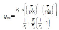 式中,Q为热流量(单位:W), F1、F2为热、冷壁表面积,T1、T2为热、冷壁温度,ε1、ε2为热、冷壁表面辐射系数,σ为斯蒂芬-波尔兹曼常数,取值为5.67W/(m2•K4)。
