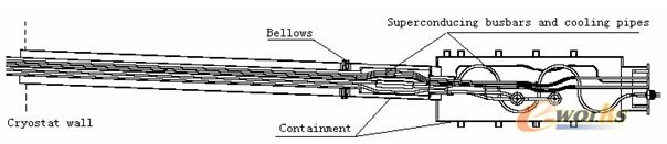 作为磁体馈线系统的主要组成,磁体过渡馈线系统(Cryostat Feedthrough,CF)由外部壳体、内部超导电流传输线(Busbar)、冷却管路和诊断电缆等组成(见图1),是磁体进行供电、冷却、诊断等的主要通道。因此,磁体过渡馈线系统的合理设计直接关系到整个超导磁体系统的正常运行。