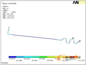从热、电磁、热+电磁三种分析的结果(见图3)来看,超导busbar的最大变形部位均位于S形弯曲段,最大应力小于极限应力(计算得到),且裕度很大,因此现有形式的结构设计能完全满足设计要求。