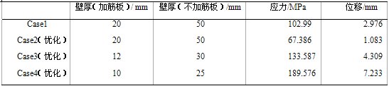 对结构和壁厚进行优化后,再利用ANSYS 软件进行静力分析,得到的结果见表4。