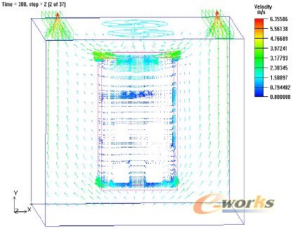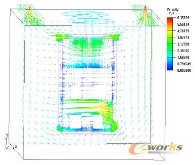 2) 两种状态的流场情况在电源机箱的风扇处存在明显的不同,详见图4;