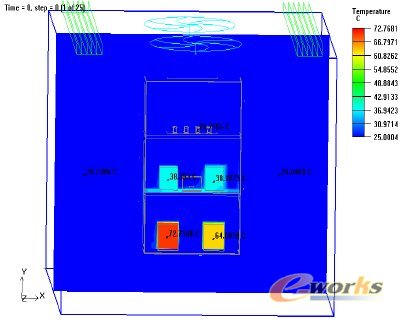 图5 t=0 分钟 试验模型中心Z 向切面温度云图