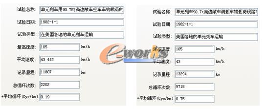 应用我们最新开发的重载货车虚拟疲劳寿命预测系统可以自动调用上述载荷谱。这以上两种载荷谱的其它数据见下图: