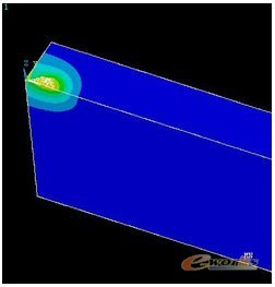 由ANSYS温度场计算可知:熔池自由表面温度高达1800℃左右而约束气体温度只有25℃,所以在熔池表面存在换热,熔池自由表面温度和表面气体温度如图10所示: