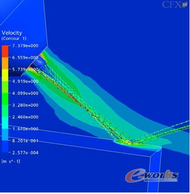 图中白色箭头1和2分别与图12图中白色箭头1和2相对应,所指为1将被熔池捕作粉末颗粒,2所指为反弹粉末颗粒,对于粉末颗粒被熔池捕作后又反弹的情况,在实际激光快速成形中是应该尽力避免的,只有当使用大颗粒粉末或大流量约束气时才会着重考虑,所以一般情况下使用固体颗粒撞入液态熔池被完全吸收的假设是正确的。