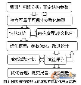 基于虚拟样机技术,以Hp WorkStation2000为硬件支撑平台,以ANSYS软件为工具对某大型空间刚架结构进行参数优化,研究过程如图1。