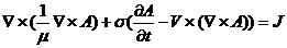 式中A代表磁场的矢量磁位;V代表介质相对参考坐标系的运动速度;J代表外部强加的源电流密度;σ是介质的电导率。