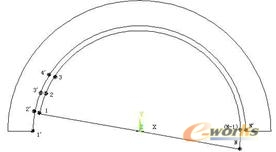 独立坐标系法,将电机气隙沿其径向中心线一分为二,在中心线上画两条完全重合的圆弧分别构成静止的定子边界和运动的转子边界。对定子和转子采用两套相对独立的坐标系,定子坐标系是固定在定子上的静止坐标系;转子坐标系固定在转子上,随转子以转子实际转速旋转。两个坐标系下的场是独立的,只通过气隙中心线上的节点进行周期性或半周期性边界条件的处理。定转子初始位置如图1所示,为方便看图,定转子之间留有一个空隙,其实模型中定转子边界是重合在一起的。让转子边界上的节点和定子边界上的对应节点耦合,即节点1与1’ 耦合,2与2’ 耦合,依此类推,N与N’ 耦合。其实建模时定转子分别建模,把重合的节点压缩(Merge)后,ANSYS程序自动满足。