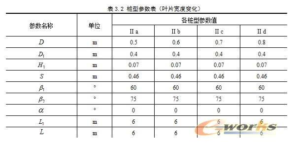 在桩内径和其它参数均不变的情况下,改变叶片宽度,即改变桩体外径D,考虑表3.1所示的四种工况:输入桩型参数见表3.2所示,计算结果见表3.3、图3.1所示。
