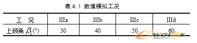 (1) 在其它参数不变的情况下,改变叶片的上倾角β1,考虑表4.1所示的四种工况: