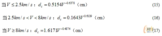 对于本文的研究内容:1mm厚2A12铝合金防护屏,3mm厚5A06铝合金舱壁,间距10cm的防护结构,受2A12铝合金球形弹丸撞击,最终得到其弹道极限方程为: