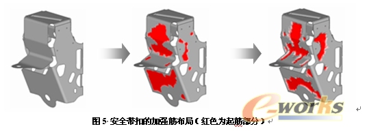 形貌优化是一种面向薄壁结构和钣金件的概念设计技术。设计人员可以确定设计区域、筋的最大高度和起筋的角度等参数,OptiStruct可以寻找出最佳的加强筋布局。