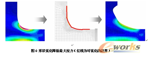 形状优化是一种对现有零部件的形状和位置进行优化的技术,适合于详细设计阶段。OptiStruct可以直接改变零件的有限元网格,而不需要反复修改CAD数据即可获得全新的产品设计性能,从而大大减少优化设计所需要的时间。OptiStruct支持自由形状优化,无需再手工建立形状变化变量即可对选定边界进行优化。
