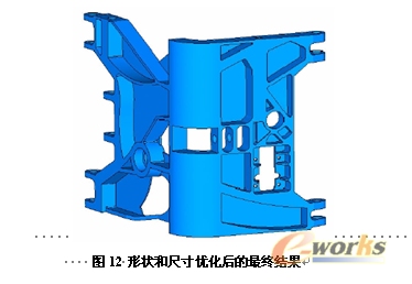 《二》、在详细设计阶段可以对初步设计模型进行进一步的优化,在满足所有工况条件和最大许用应力水平的情况下,通过形状和尺寸优化方法来优化加强筋的尺寸和形状,以达到进一步优化结构、降低质量的目的。优化设计的最终结果减重达到了20%,设计周期从原来的三个月缩短到现在的三个星期。