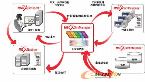 MSC SimEnterprise(SimDesigner/SimXpert/SimManager)以集成仿真方案作为企业的竞争力之一,通过增强创新性和知识管理技能,为企业带来决定性的竞争优势。