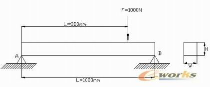 如图所示的梁,长度L=1000mm,两端均为固定铰链约束(超静定),在距离右端1/5处作用集中载荷,利用ANSYS优化分析技术,确定最佳的宽、高的比,使得梁的总质量最小。梁的弹性模量E=2.0e5,泊松比0.3,初始的宽度W和高度H均为20mm,集中力F=1000N。应力的取值范围为:195-200pa;W、H的取值范围为:20-50mm