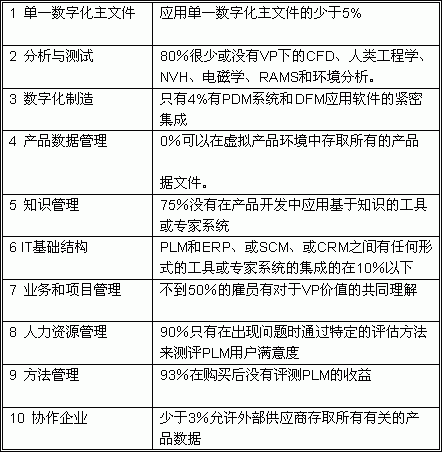 | | 制造业在计算机辅助设计、制造和工程分析系统方面进行了大量的投资。IT业分析家预言到2005年,对整个产品生命周期管理(Product Lifecycle Management,PLM)方面的投资,包括硬件、中间件和相关服务将达到500亿美元。 很清楚为什么公司如此积极地追随PLM的潮流。全面地实施PLM有潜力缩短产品研发周期20-30%,提高生产率10-25%,减少材料消耗20-30%,减少工程更改15-20%,降低管理费用4-12%。所有这些节约和改进可以降低产品成本和增加企业技术创新能力,使企业制造出更好的产品,具有更强的竞争能力。在这个竞争激烈和价格停滞的时代,PLM为制造业企业提供了比所有其它方法更有可能提高产品销售额的机会。 然而,如果你仔细读了上述段落,你会认识到它包括了两个重要的附带条件-“全面地实施”和“提供更多的潜力”。购买技术和用它来获得最大收益之间的差别是巨大的,事实上大多数公司的投资都没有得到很好的利用。 IBM曾经研究过世界上领先的制造商,获得了他们用虚拟产品来支持贯穿整个产品生命周期的创新的关键经验。这些经验以组织、流程和技术为中心,通过协同和深入应用虚拟产品的创新来提高能力。 在我们的研究项目-全球范围的、建立当前PLM领域“最佳经验”中,我们获得一些有趣的东西。通过和一些关键行业(汽车、航空航天、电子和电气等)的领先的公司共同工作,IBM寻找出使一个公司最大限度地应用虚拟产品的决定性的经验。虚拟产品是PLM的理想状态-当在真实世界中什么都没有发生之前,对一个产品进行设计、形成原型、测试、甚至制造和在三维环境下服务。在虚拟现实下操作这一切,不需要纸面的或物理的原型,相对于物理产品和真实业务,PLM产生了相当可观的利益。目标是生产出人们想买的产品和为股东创造价值。 然而即使是最好的情况,大多数PLM用户还远没有达到实现虚拟产品的程度。虽然有些企业在这个或那个领域,如:分析和仿真、数字化制造、价值管理等取得了重大的进步,在IBM调查的10个最佳经验的工业领域中,还没有一个企业取得了包括所有方面的成果。事实上,所有被测试公司的平均水平都没有达到潜在最佳状态的一半。  然而,好消息是由于PLM的潜力大部分没有被开发,大多数企业仍有机会应用世界级的PLM产品来实现缩短周期、有效创新和降低成本方面的目标。 运用这些最佳经验,IBM开发出一种方法来帮助企业提升他们对PLM的应用。它将帮助他们明确他们在什么位置,他们需要往哪里走,使他们变得更有竞争力、更有创新能力和在更加可持续发展的道路上怎样从一个点走到另一个点。我们把整个实践领域从测试、制定方法和实施--称为虚拟产品创新(Virtual Product Innovation,VPI) 虚拟产品:PLM的关键 产品生命周期管理是软件、硬件、服务和咨询的独特的组合,它可以改进企业的业务能力和竞争力,这一点是通过集成贯穿产品生命周期的产品信息和支持各阶段的业务功能做到的。 许多企业广泛采用PLM是由于受到业务挑战和战略要求的推动。业务挑战包括日益加剧的市场竞争,这是由有限的开发资金和资源约束引起的。结果是上市时间的延误,影响了市场份额和赢利能力。  为了应付这些业务挑战,企业需要改进他们的产品创新能力,认识到赢得市场份额的最好方法是继续引入创新产品和改进已经投入市场的产品。最具有创新能力的企业一向能够达到他们的赢利目标,使销售额和市场份额都得到增长。有创新能力的企业比他们的竞争者成本更低,能够更好地利用他们的核心能力。 PLM对于解决这些挑战和对策来说是基本的,虚拟产品是企业在PLM方面的投资取得成效的关键。PLM描绘一个产品的整个生命周期,从初始概念经过所有的过程直到现场维护。在扩展的时间框架内,PLM通过技术、流程和组织结构既管理虚拟产品数据又管理物理产品数据。 虚拟产品最佳实践经验 在90年代,PLM的各学科开始集成到一起,IBM咨询小组调查了许多先进的汽车和航空航天企业以确定在改进工程部门的效率和减少订货至交货的时间方面有哪些流程起到关键作用,有哪些经验。项目总结出在产品开发过程中应用的几百条实践经验。但是和以往一样,只有少数经验可以在各个企业中都取得最好的效果。这些少数的实践经验就被确定为最佳经验。 IBM总结的10条最佳实践经验有: 建立一个虚拟产品作为所有产品生命周期管理活动的参考 把虚拟产品的应用扩展到工程分析和测试 用虚拟产品来开发和仿真生产过程 管理产品数据和它的配置 管理和重用企业的知识和经验 优化IT基础结构和系统以支持虚拟产品 把虚拟产品集成到商务及项目管理中去 改进组织机构和人力资源管理以适应虚拟产品 评估和管理虚拟产品的附加价值 在企业中推广协同方式的虚拟产品开发与制造 仔细研究这10条最佳经验,你会发现虚拟产品依赖于所有电子产品数据和支持方法以及组织机构的集成。这包括所有的电子数据,从应力分析结果到Word文件、Excel电子表格和3D模型或电子数字样机。 然而有一点值得注意的是,当纵向流程既工程、市场、采购、制造的自动化大大改进时,流程之间的集成常常被忽视。结果是对虚拟产品非常重要的非几何数据没有和几何数据集成,通常情况是没有准备好集成。这就迫使企业在实际世界、基于纸面的世界和虚拟的电子世界之间来回