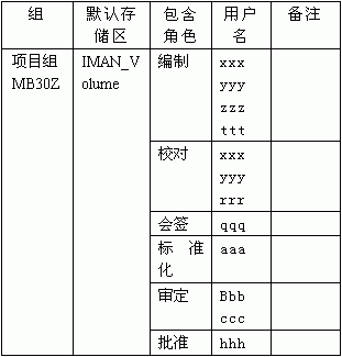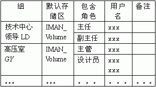 ◆PDM 系统所需的人员组织模型定义。IMAN系统人员管理模型由三个要素构成:组、角色、用户。组织关系是用户具有不同角色,角色属于不同的组。长征电器股份有限公司技术中心组、角色、用户名的具体命名规则由长征电器技术中心的标准化部门制订,且具体人员组织模型定义如下: