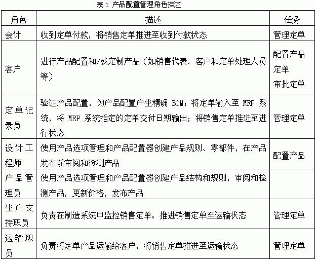 (1)产品管理员:建立产品结构。为产品定义特征和选项,包括价格和为产品指定一些与市场相关的规则。他和设计工程师负责在产品结构和规则发布之前的审核。