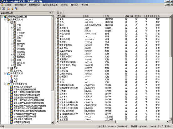 模型定制是为了适应和支持企业的业务对软件系统进行一定的设置和调整,这种设置和调整是不需要修改软件系统的。模型定制功能主要是为企业系统的维护者和管理员提供的,一般都会提供相应的工具来支持。TiPLM系统也提供企业模型定制工具,其模型定制的范围包括:数据模型、组织和权限模型、业务过程模型、视图网络模型、生命周期模型等等。