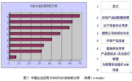 根据e-works在2004年底进行的统计,目前,企业应用PDM/PLM主要出于一下目的: