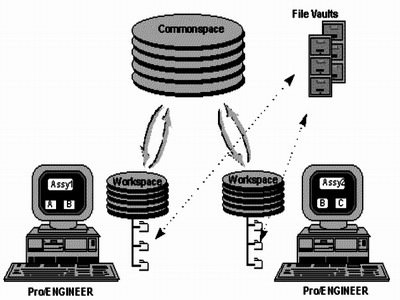 它是Pro/INTRALINK提供给每个用户用来管理他们工作的本地数据库。它允许每个用户既能独立操作,又能与其他用户并行工作。工作区数据库提供了一系列工具,来使多个用户在其工作环境中进行相关产品与设计变化的合并。用户可以在本地工作区内查找和修改对象。用户会经常检出(Check Out)公用区中的对象到工作区来进行修改,当用户修改完所有对象时,又可以将它们检入(Check In)到公用区。