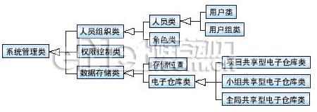 常开对数据访问及使用安全保密分成不同的控制级别,在用户管理对象类中,主要包括与人员组织相关的对象类、权限控制类以及与工作环境配置相关的数据存储类。下图描述了常开用户管理的对象分层模型: