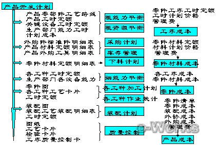产品开发的目的是为了满足市场用户需求,其开发过程中的一系列图纸、工艺、文档资料都是为了生产出用户需求的产品,一系列图纸、工艺、文档资料是组织生产,指导生产所必须,组织生产每一个过程都必须用一定的技术资料为基础依据,所以在组织产品生产过程中不但要及时提供图纸、工艺、文档资料,而且要求图纸、工艺、文档资料的完整性、正确性, 产品开发阶段的质量将严重影响产品制造的质量及生产过程优化, 生产周期的缩短、成本的降低等等。图9对产品技术数据与生产数据关系的分析。