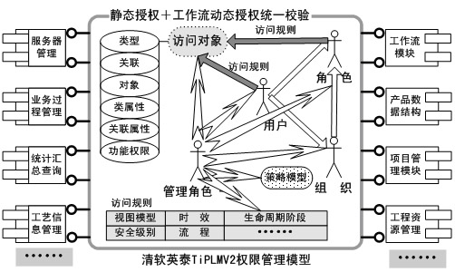 权限管理是产品生命周期管理系统的基础模块,保证了系统的用户之间数据共享与安全保密。目前基本的访问控制模型是访问矩阵模型(ACM),但是访问控制矩阵模型太大,并且由于许多主体对于大多数客体不能访问而使得矩阵变得过于稀疏,这使得矩阵不容易执行,权限管理中采用的访问控制模型一般有:自主性访问控制DAC(Discretionary Access Control)、强制型访问控制MAC(Mandatory Access Control)、基于角色访问控制RBAC(Role Based Access Control),后者已经成为前面两个模型的最佳替代者。在RBAC 中,权限与角色相联系,用户作为合适角色的成员而获得权限,极大地简化了用户和权限的管理。清软英泰TiPLM系统采用了目前应用最为广泛的基于角色的访问控制(RBAC)模型。