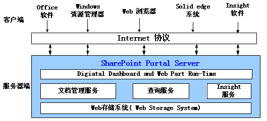 EDS公司根据SPS的特点,构建一个新的服务器产品InsightServer,它能与任何版本的SharePointPortalServer产品共同使用,是SPS与Insight的桥梁。并且针对Solidedge文件特点,开发了三个WebPart,以便在SPS所提供的Dashboard(企业内部网站)中显示三维图形、装配件的BOM和文档属性。