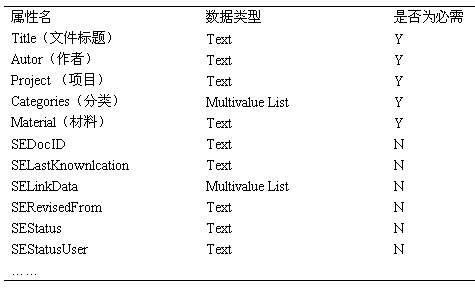 在SPS中提供一种叫Profiles的文件,用来设置文件夹中文件的属性。对不同的文件夹可以设置不同的Profiles。在Profiles中,可以根据文件类型自定义属性。属性表配置是快速查询的基础。如建立“零件”的Profiles如下表所示。其中后六个属性是SolidEdgeInsight自动提供的