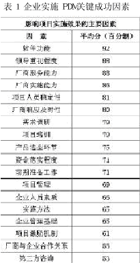 表1 企业实施PDM关键成功因素