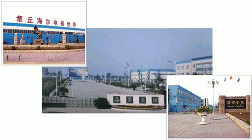 章丘海尔电机工业园位于济南章丘市,投资6000万元,于2004年5月8日破土兴建,当年9月17日全面投产。工业园占地500亩,生产制造车间60000平方米,道路硬化面积58000平方米,园区绿化60000平方米。引进国际先进的电机生产技术和关键的检测、生产设备,整合工艺流程,优化生产布局,实现了从冲片、压锍、绕线、嵌线到总装全过程的自动化生产线。新厂区的建成投产,生产潜能倍增,发展空间宏大,成为国内家用电器电机品种系列最全、市场占有率最大的大型生产和出口基地。