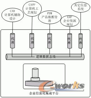 制造业信息化发展到21世纪,"集成"和"协同"成为其主旋律。根据Meta Group的统计,一家典型的大型企业平均拥有49个应用系统,33%的预算是花费在传统集成上,通过零星的"端对端"连接方式将众多的"信息孤岛"联系起来,以便让不同的系统之间交换信息[1]。根据摩根斯坦利公司对大企业CIO的调查,在主管企业信息化人士所关心的问题中,如何将众多的企业应用集成起来,是他们最为关注的热点。制造业信息化集成平台在异构分布环境下(操作系统、数据库、制造设备),提供各类标准化和规范化系统集成及资源共享服务,使得所有接入制造网络系统的用户能够实现跨地域的、透明的、一致的信息以及资源访问与交互,支持特定领域的软件系统及各种制造资源的共享与集成[2] ,实现数据、功能、流程三个层面的集成需求。制造业信息化集成平台的研究与应用涉及到体系结构、运行模式、实施方式以及企业的流程重组等众多问题。本文研究并探讨一套架构灵活、部署快速、易实施、低成本的集成模式和集成框架,开发实现现有应用软件(CAD/CAPP/ PDM/BOM等)无缝接入的集成平台。