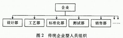 (1)传统企业型:即按照专业划分配备人员,各部门的工作性质单一,工作人员较为固定,工作流程以串行为主,见图2。