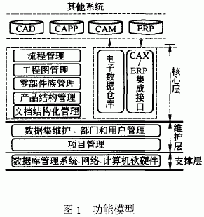 PDM 的功能主要由3 个层面组成: 支撑层、维护层和核心层。如图1 所示。