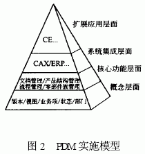 PDM系统在企业中的实施模型可以用金字塔来表示, 如图2 所示。任何PDM 实施过程中的活动都可以纳入到该模型的某一层面上。