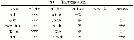 对于图1 中的零部件的设计流程,它的工作流管理模型如表1 。