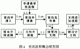 工程更改过程本身就是一个特定的工作流,它有申请、评审、实施、通知更改等几个基本环节,而这几个基本环节又包含了更详细的步骤。如对工程更改单的会审必须确定会审的人员,通过对更改单的审批,然后进行签发。同时被更改的设计文档还必须与一个相应的版本升级工作流相关联,如果更改过程产生了新的设计文档,那么还需要有一个生产发放工作流程。