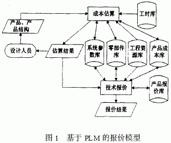 基于PLM 的快速报价系统,由PLM 系统提供产品的设计和管理,在成本估算的基础上进行快速准确产品技术报价。报价模型如图1 所示。