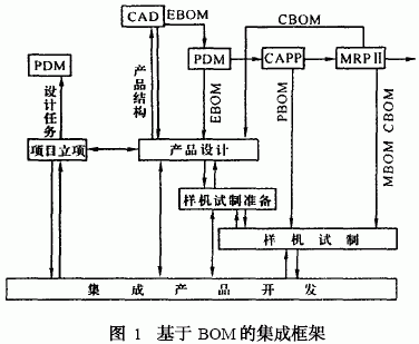 为快速响应市场变化,满足客户对产品交货期、质量、价格和所提供服务等方面越来越高的要求,企业需要新的、可扩展的、具有适应能力的方法改进产品开发过程。为实现这种变革,集成产品开发(IPD)的思想被提出,并很快应用到企业实际的产品开发中。物料清单(BOM)在集成开发环境中不仅起着联系工程设计分系统和工业设计分系统的作用,而且起着连接工艺设计分系统和经营管理分系统的重要作用。因此,在多系统的企业生产环境中,实现产品信息共享,解决IPD中基于BOM的系统集成问题、一致性及实效性问题就显得尤为迫切。