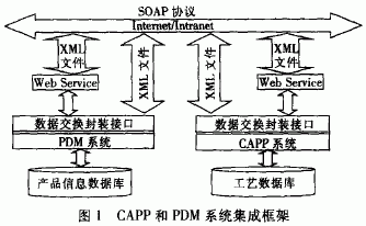 因此在进行PLM系统开发时,最关键的问题就是PDM系统与其他系统的信息集成问题。然而目前的CAD, CAPP, CAM等系统各有不同的数据存储和表现格式。CAD系统具有相似的软件结构和界面,能够提供一个统一的接口,比较容易实现;而CAPP系统则主要是企业定制的,不同的CAPP由于其使用层次及涉及的数据不同,其软件结构也有很大的不同,并且每个企业具体的工艺流程、工艺库不同,其CAPP系统也不同,可以说每个企业的CAPP系统都不同,如果PDM对每一个CAPP系统都做一个专用集成接口,那么对每一种集成接口都要专门进行维护,这样维护成本极其昂贵,并且专用集成接口的可移植性较差,导致每做一个不同的集成接口开发成本较高。为了解决上述问题,提出了一个可扩展的通用CAPP和PDM系统的集成框架,此框架是平台无关的,具有较好的可维护性和可移植性。